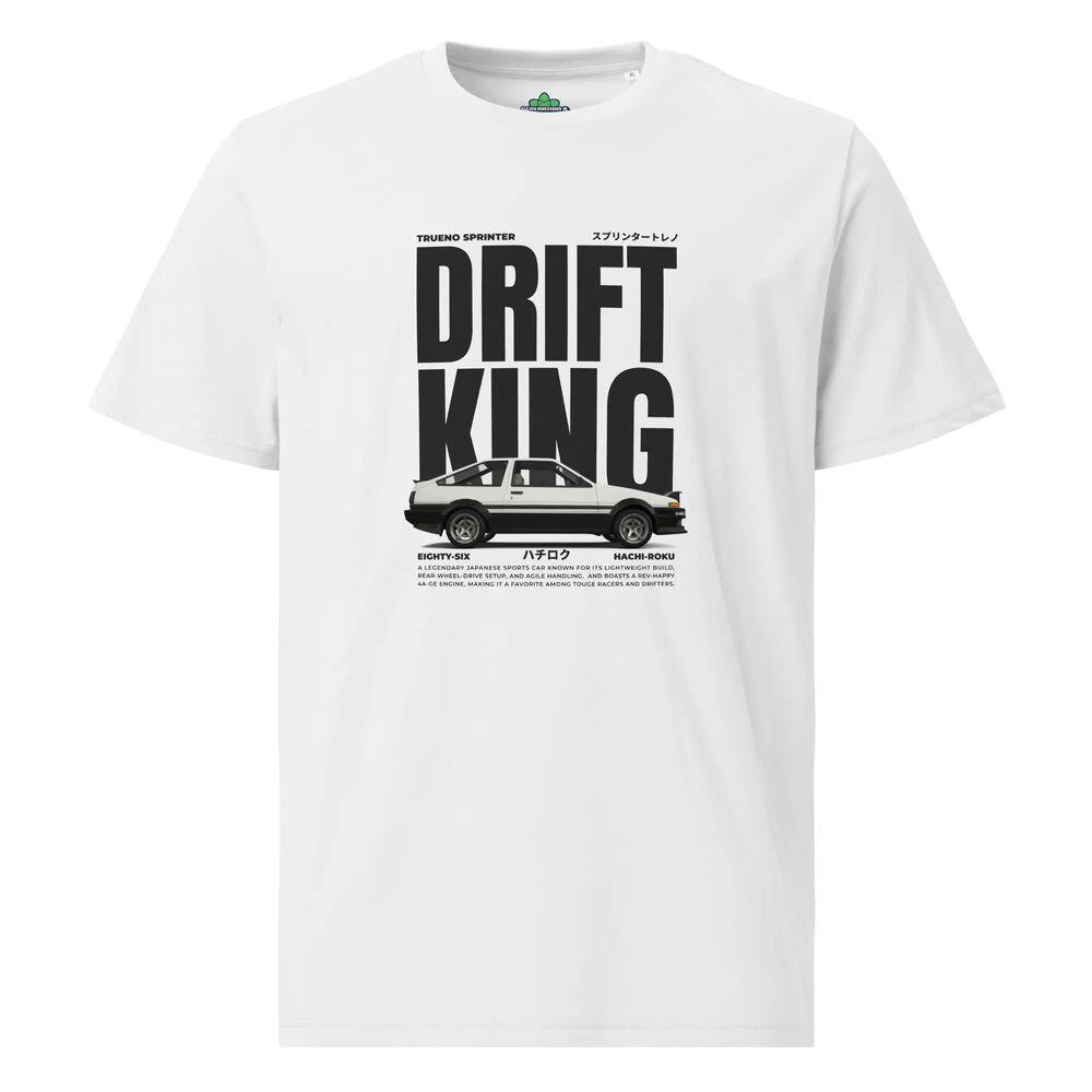 A „Drift King AE86” fehér drift póló a GenX kínálatában egy különleges darab, amely tiszteleg a drift kultúra ikonikus alakja, Keiichi Tsuchiya, és legendás autója, a Toyota AE86 előtt. Ez a póló nem csupán egy ruhadarab, hanem egy emlék a drift történetének aranykorából.